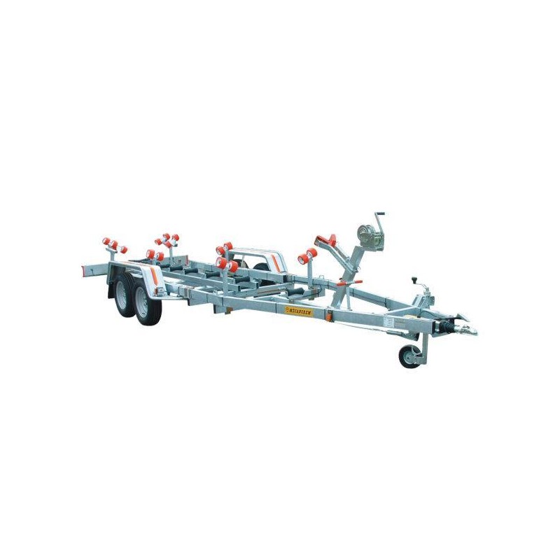 Les remorques MECANOREM sont conçues pour le transport et la mise à l'eau de bateaux à moteur, à châssis triangulé, équipées d'un chemin de roulement articule (sur la traverse arrière) multi-galets (version coque en V) ou à diabolos (pour coque lestée ou pêche promenade).