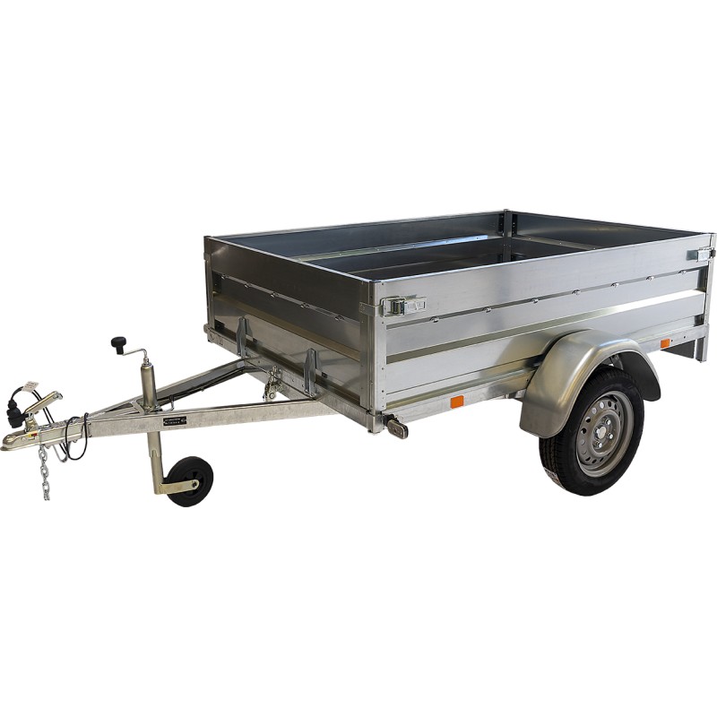 Options : bâche plate et haute avec arceau, roue de secours et support, antivol, rehausse ridelle pleine, rehausse ridelle grillagé, porte échelle, Béquille stabilisatrice, kit rampe haillon de chargement, rampe acier .